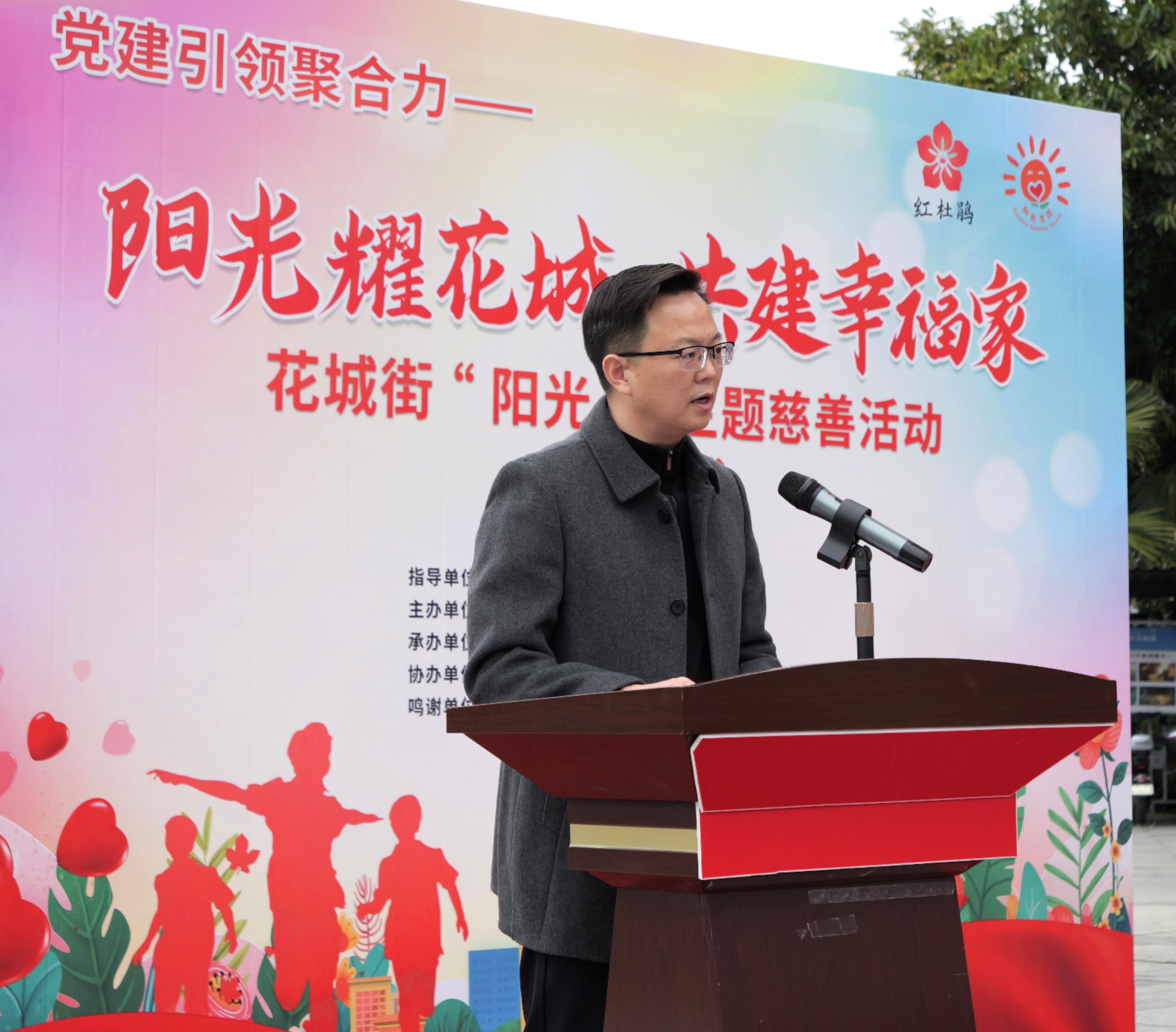 袁仕偉董事長在致辭中首先向花都社區致以誠摯的感謝,表示本次 "陽光 +" 志愿服務行動與我們企業 ' 讓夢想充滿陽光 ' 的公益理念非常契合。